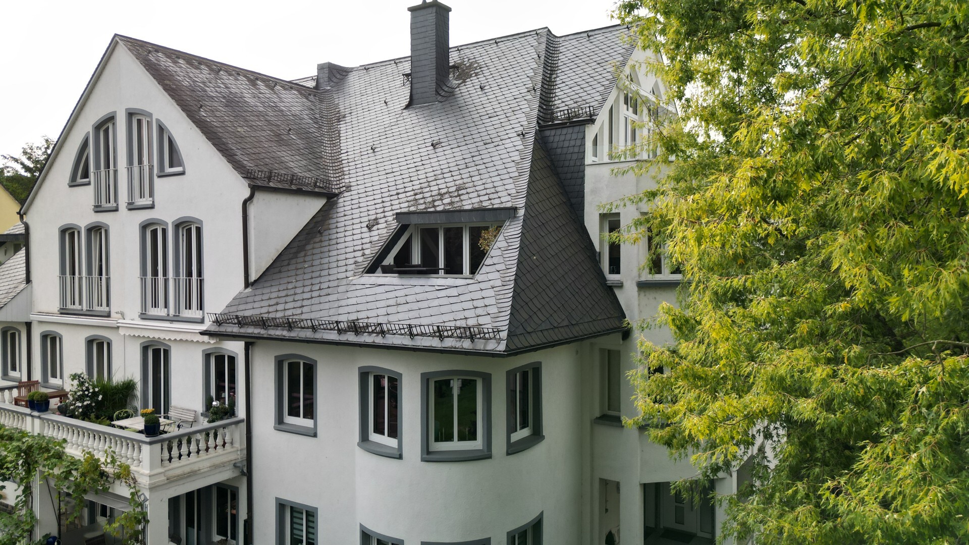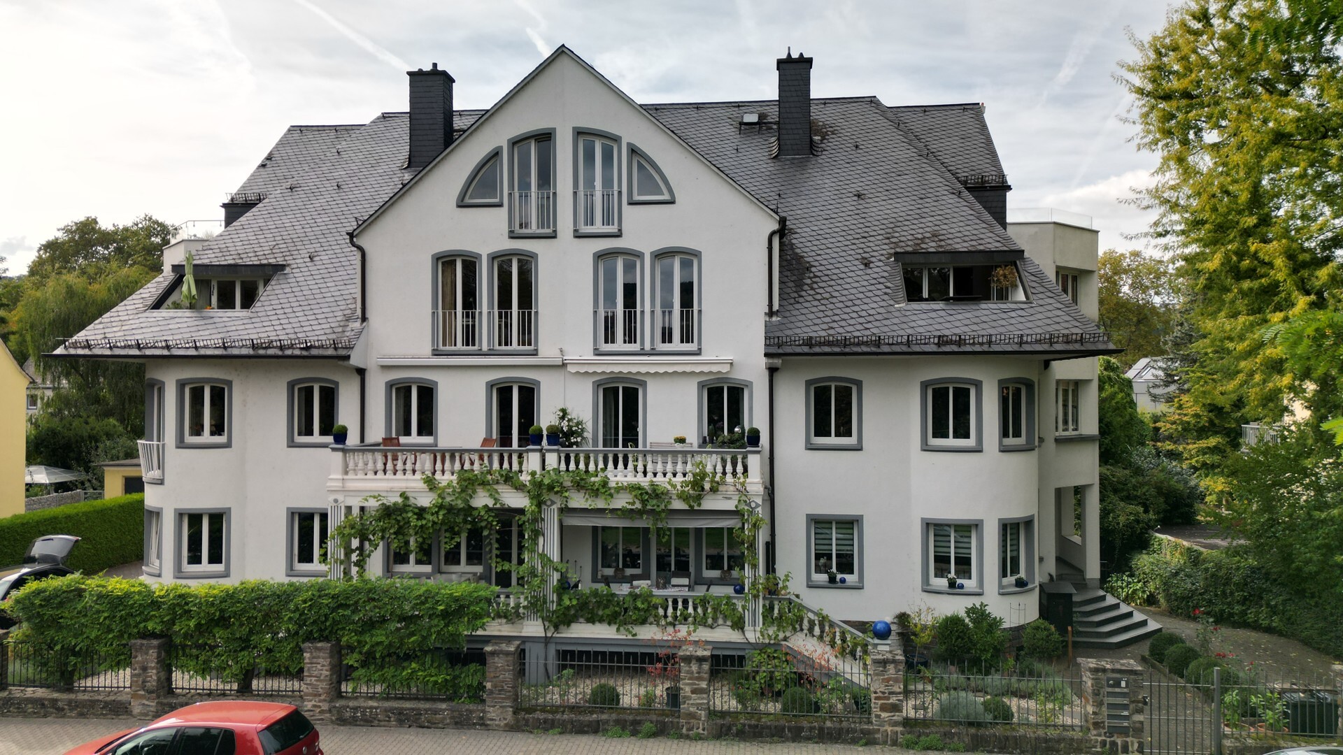 Dieses prachtvolle Anwesen bietet modernen Komfort mit neuer Gas-Brennwertheizung (2024), zweifach Isolierverglasten hochwertigen Fenster der Firma Schüco (2019), französischen Balkone, hochwertigen Schreinereinbauschränke im Schlafzimmer und Dielenbereich, eine neu eingebaute schalldichte Wohnungseingangstür (2019), Glasfaseranschluss, einer 1996 neu eingebauten Dachdämmung sowie Naturschiefereindeckung und hochwertigen Materialien wie Marmor und Schiffsboden-Parkett.